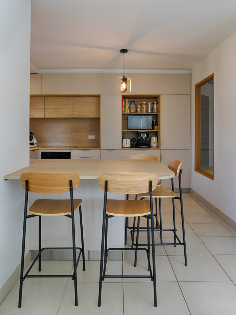 Ce projet d’agencement intérieur a été conçu pour une famille avec enfants, souhaitant un espace à la fois fonctionnel, chaleureux et lumineux. L’objectif était de repenser les volumes de vie quotidienne pour les rendre plus pratiques, tout en conservant une atmosphère conviviale et esthétique.