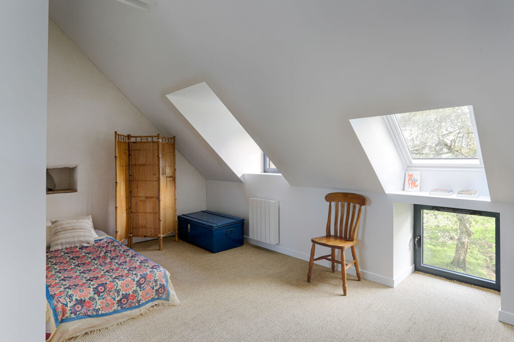 Cette maison ancienne présentait de nombreux défis : une isolation inexistante, des problèmes d’humidité, des différences de niveaux au sol et un intérieur sombre et peu fonctionnel. Tout était à repenser, de la structure jusqu’aux finitions, avec un objectif clair : redonner vie à cette bâtisse en respectant son caractère et son histoire.